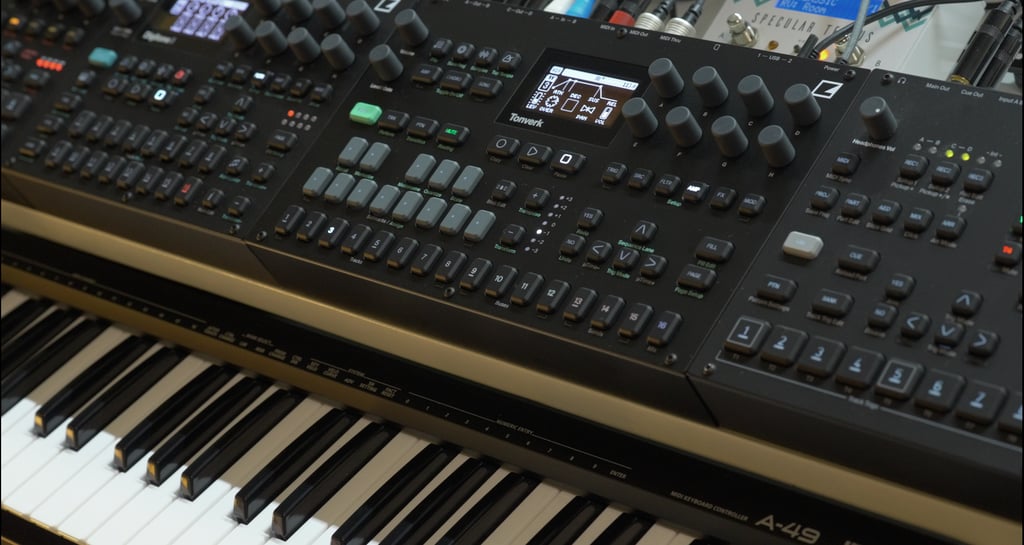 This is a music laboratory a seamless creative network of Elektron synthesizers and samplers