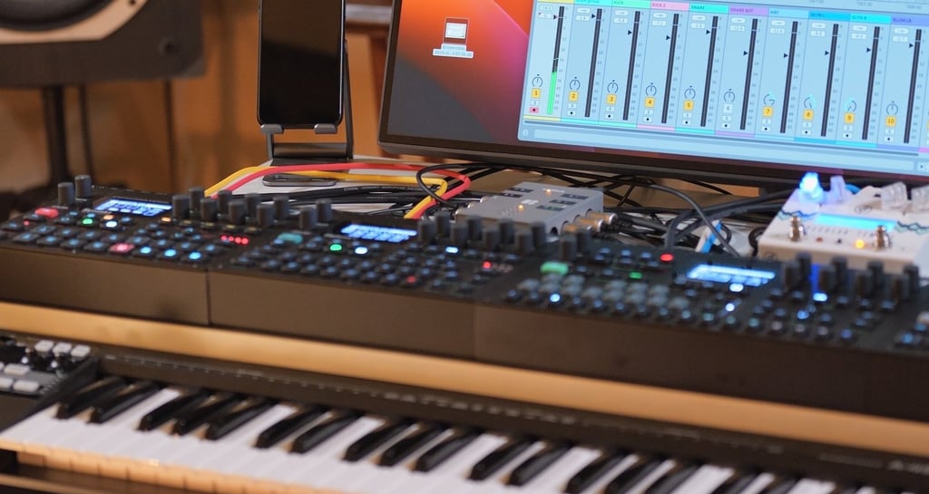 This is a music laboratory a seamless creative network of Elektron synthesizers and samplers!